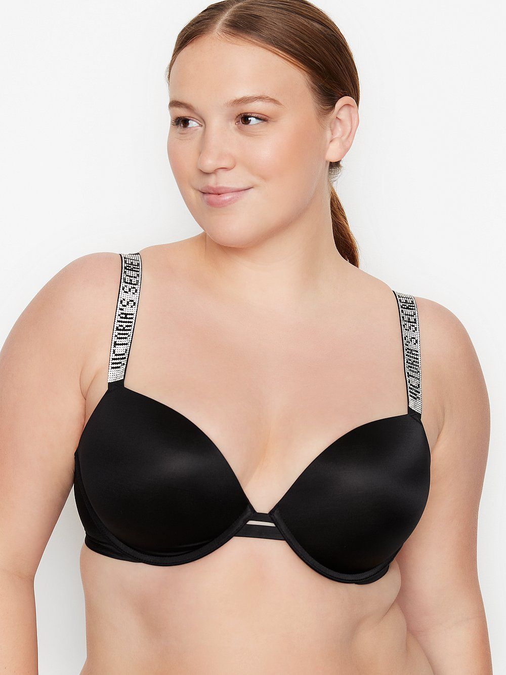 Découvrez une petite culotte soyeuse et sexy à la coupe échancrée très flatteuse, ornée des nouvelles lanières scintillantes à logo, avec un push-up #1 plus sexy que jamais, avec des bretelles brillantes et un rembourrage encore plus doux pour un décolleté et un effet plus naturel, et des bords qui disparaissent sous les vêtements.
